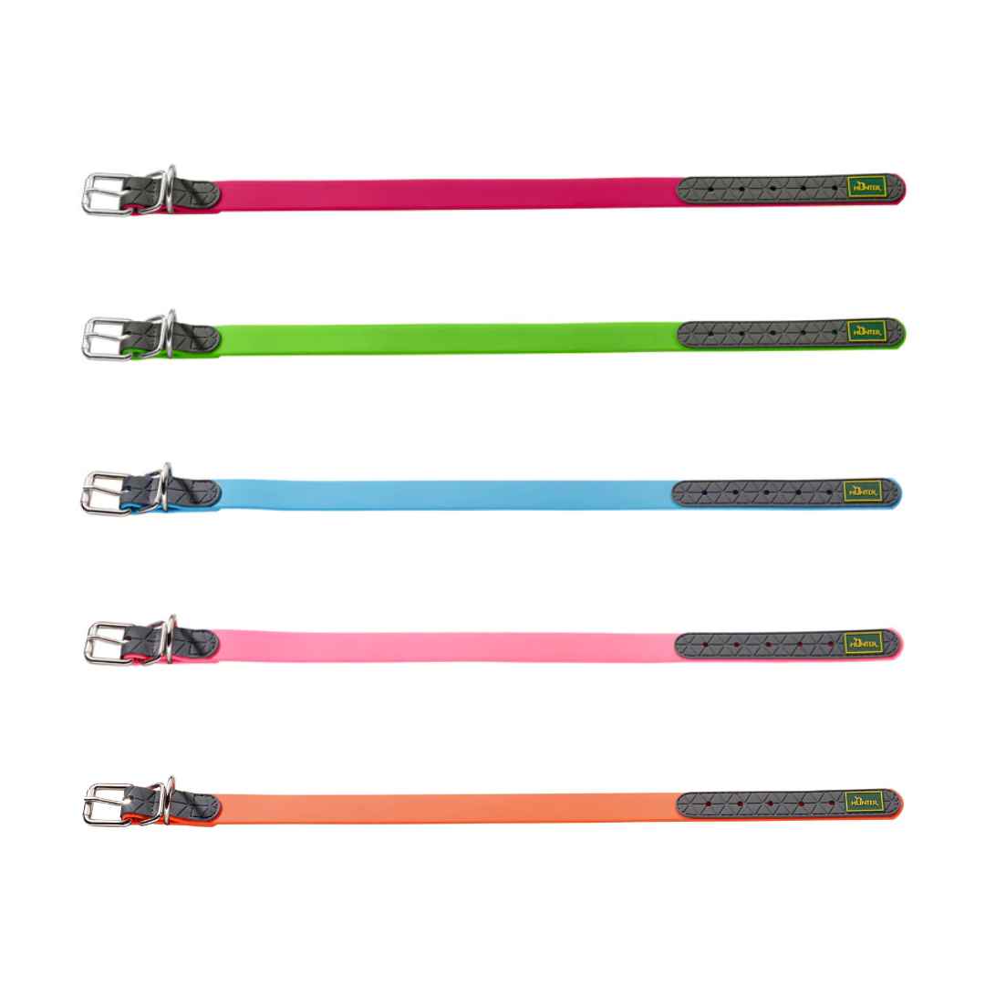 Il collare CONVENIENCE Basic è un prezioso aiuto per tutti gli appassionati di outdoor. Nuoto? Forti piogge? Laghi di fango? Nessun problema… È composto da diversi strati di poliammide, insieme a una robusta cinghia interna che impedisce stiramenti e strappi. Questo collare resistente all’acqua è molto facile da pulire con un semplice panno umido o sott’acqua. I colori al neon luminosi garantiscono una buona visibilità anche a distanza.
