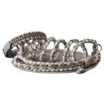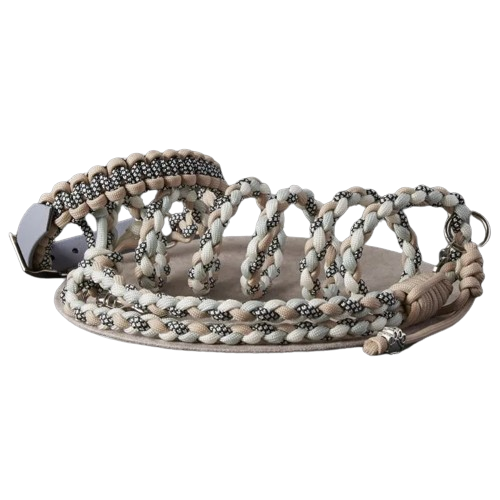Collare in Paracord 550 nei colori Beige – Diamante Argento, regolabile attraverso una cintura di Biothane colore grigio. Adatto ai cani di taglia piccola e ai toy – spessore 5 mm – altezza 1,9 cm