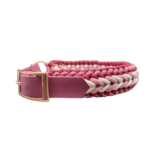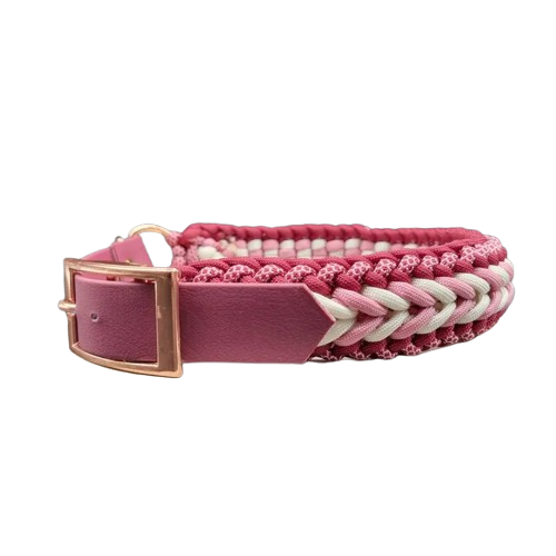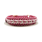 Collare in Paracord 550 nei colori Rosa Lavanda – Bianco – Vino – Diamante Rosa, regolabile attraverso una cintura di Biothane colore Vino. Adatto ai cani di taglia grande – spessore 11 mm – altezza 4 cm