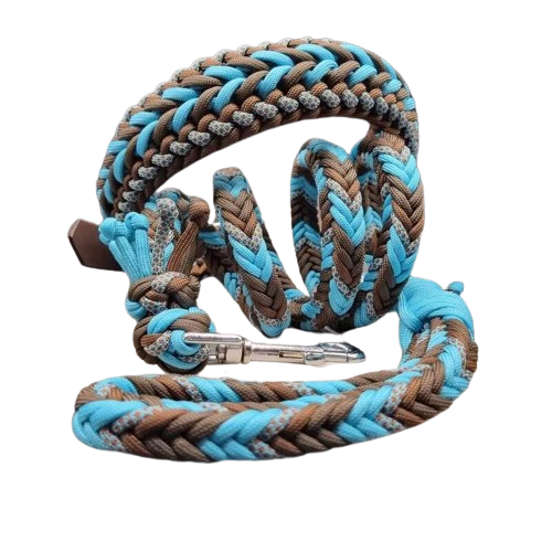 Collare in Paracord 550 nei colori Espresso – Turchese – Noce – Diamante Turchese, regolabile attraverso una cintura di Biothane colore Marrone. Adatto ai cani di taglia grande – spessore 11 mm – altezza 4 cm